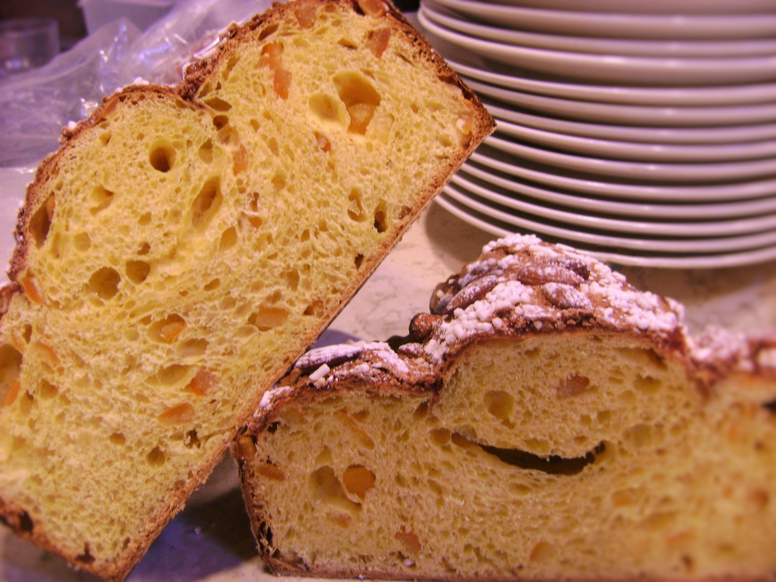 Si tratta di un dolce lievitato con ingredienti molto simili al Panettone natalizio ma, con un profumo molto intenso di arancia ed una ricca glassatura alle mandorle.