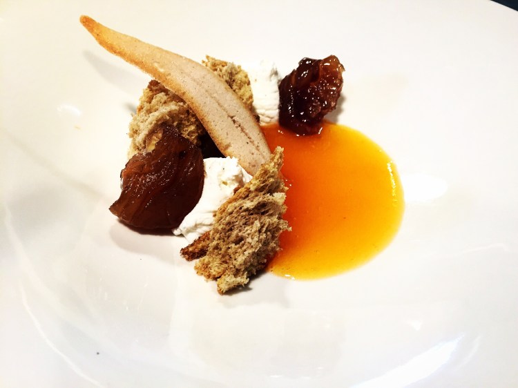 Il frutto “perfetto” è poi accompagnato da una spugna e da una lingua di gatto, entrambe realizzate utilizzando della farina di castagne.