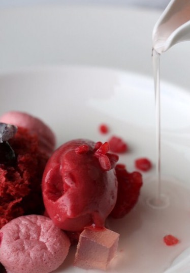 Dessert di primavera che gioca su varie sfumature dell’acidità della frutta e dei fiori date anche dalle consistenze di ogni preparazione •spugna di lamponi • lamponi freschi •perle di lamponi ghiacciati • salsa di Cassis • sorbetto ai fiori d’ibisco • finta meringa di fragole • gelatina di rabarbaro • brodo di rabarbaro • petaliContinua a leggere “Consistenze Acide”