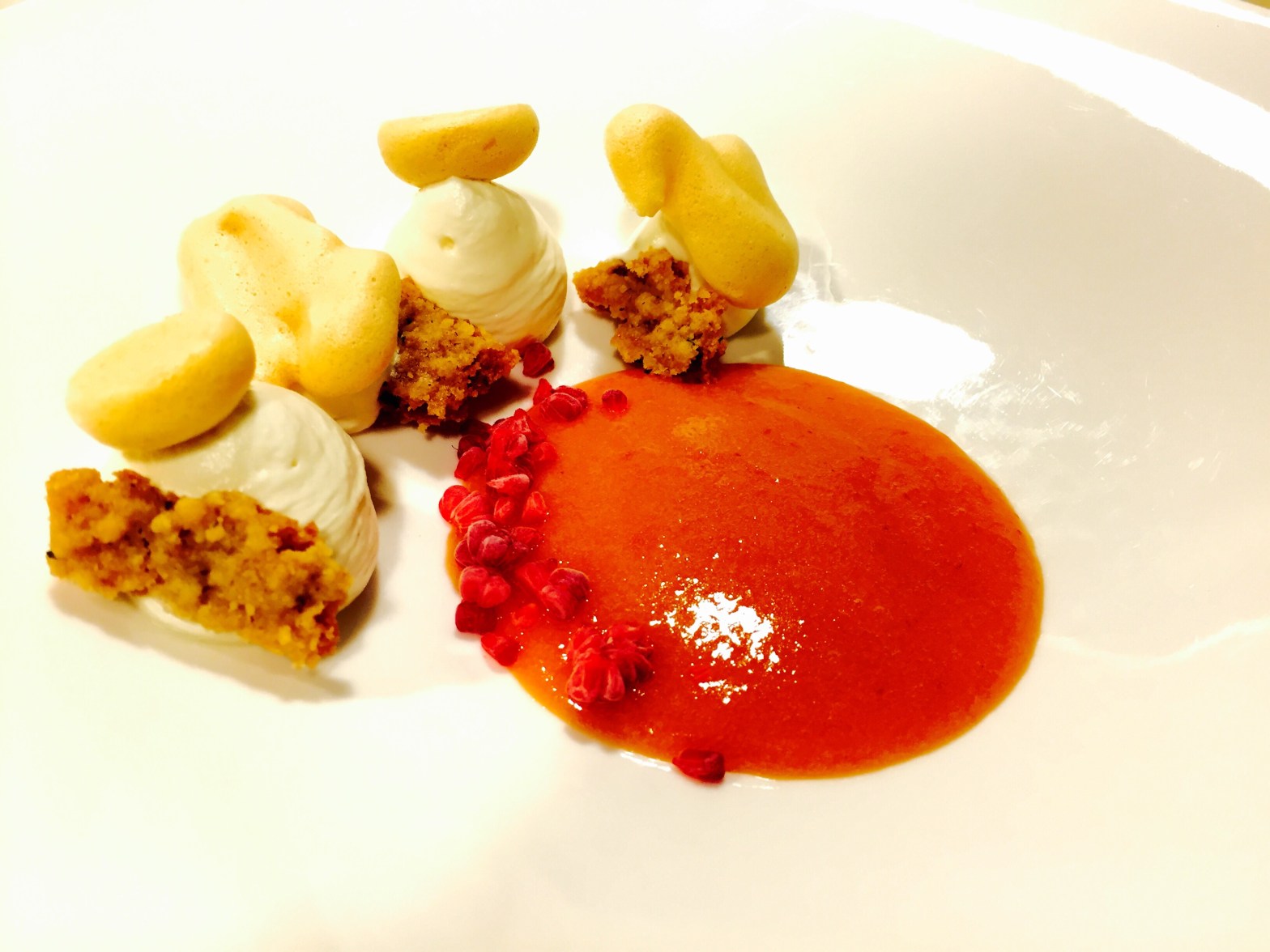 Il contrasto di una dolcezza Naturale con l’Amaro e lo Speziato • mousse leggera al miele d’acacia • composta di pompelmo rosa al fruttosio • buccia di a pompelmo rosa candita • granita di Pompelmo rosa • polvere di olio Extravergine e miele • cioccolato bianco • pepe del Nepal grattato al momento • biscuitContinua a leggere “Miele, Pompelmo rosa e Pepe del Nepal”